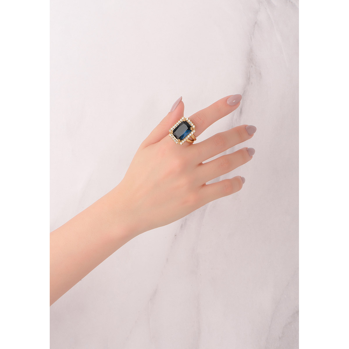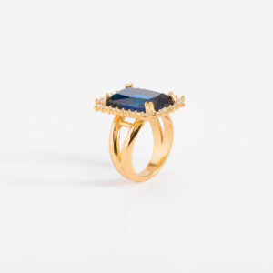 Descubre la joya que eleva tu estilo a un nivel superior. Este impresionante anillo en baño de oro combina la elegancia atemporal con un toque moderno, presentando una deslumbrante piedra diamonice en tonos cristal y azul. Su diseño refinado y sofisticado lo convierte en el accesorio perfecto para cualquier ocasión, desde una cena elegante hasta una reunión casual.