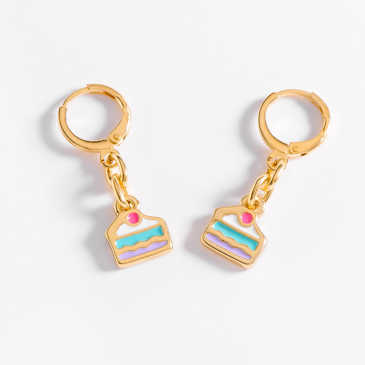 🎂✨ Aretes en Forma de Pastel con Baño de Oro y Esmalte Colorido