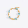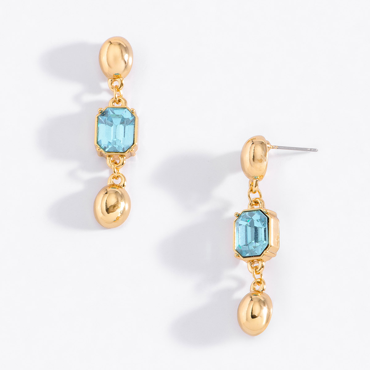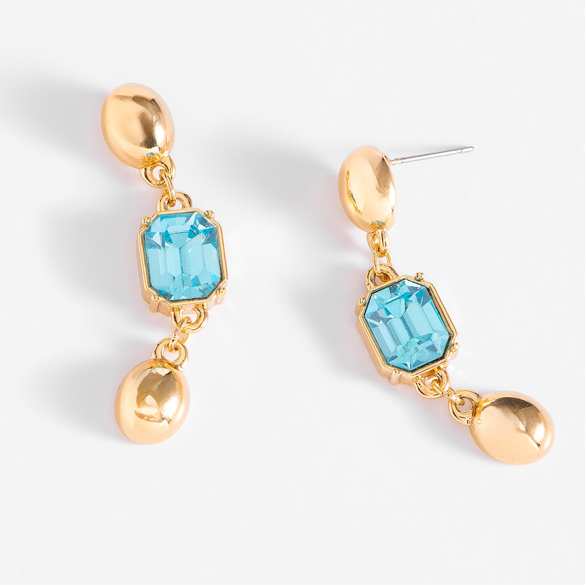 Dale un toque de sofisticación a tu estilo con nuestros aretes medianos, con poste y un elegante baño de oro. Adornados con piedras en tono aguamarina, son el complemento perfecto para cualquier ocasión especial. ¡Brilla con cada movimiento!